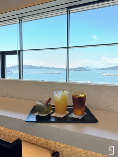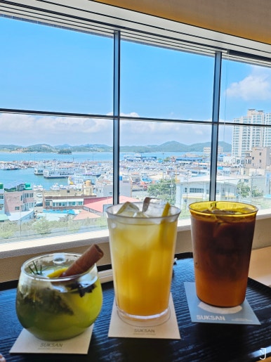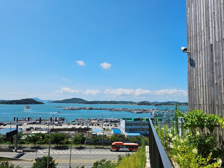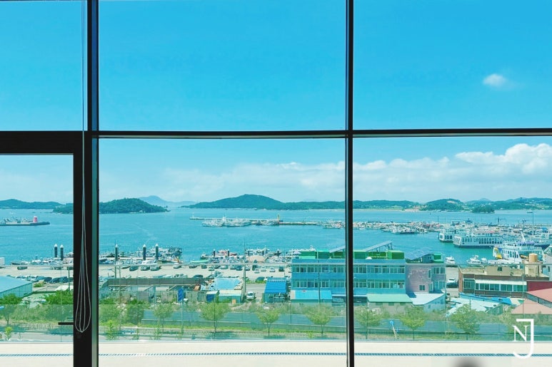 오~ 들어가니 통창으로 바다와 하늘이 눈이 부시더라구요! 🥹🩵