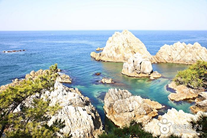 곳곳의 갯바위들이 큰 파도를 막아주기 때문에 비교적 물살이 잔잔한 데다가