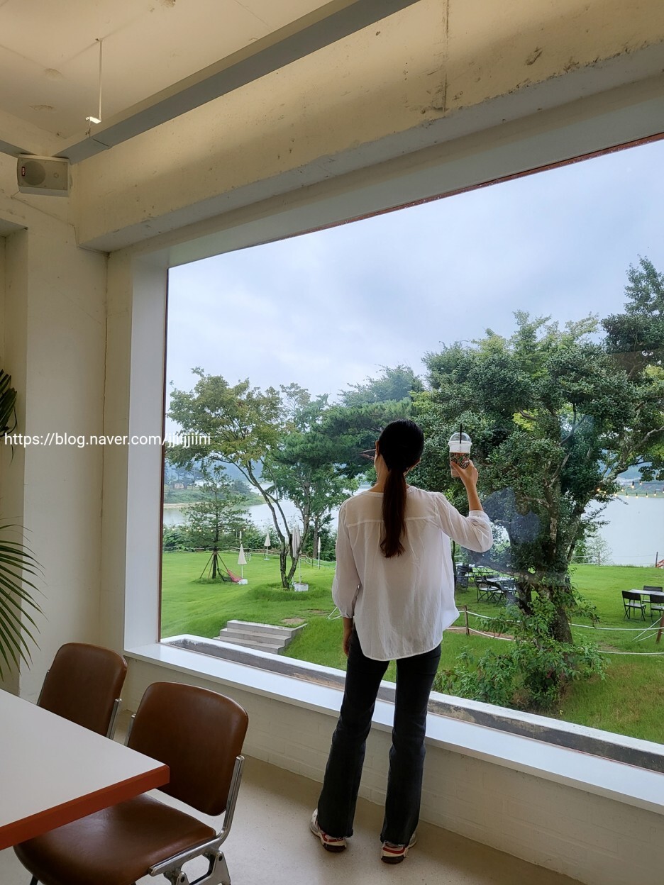 호수앞 대형카페로, 넓은 야외가 있기에 아이들이 뛰어놀수있고,
