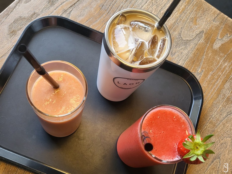 바닐라라떼, 토마토쥬스(시럽,얼음빼고), 딸리쥬스
