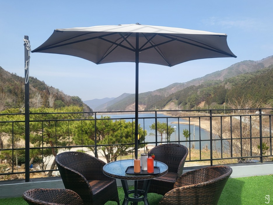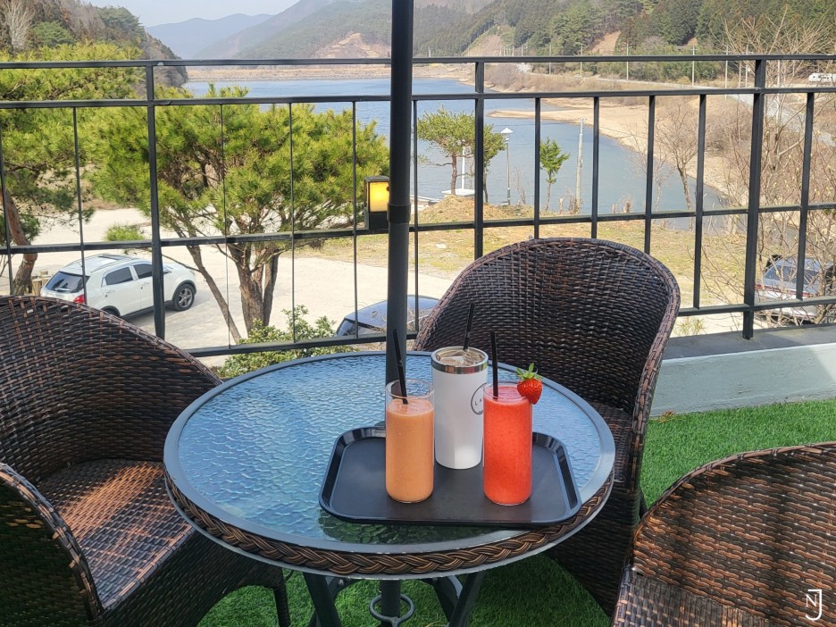 저수지 앞 산속 카페!