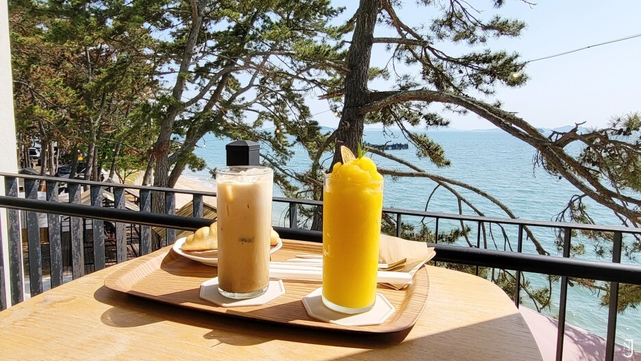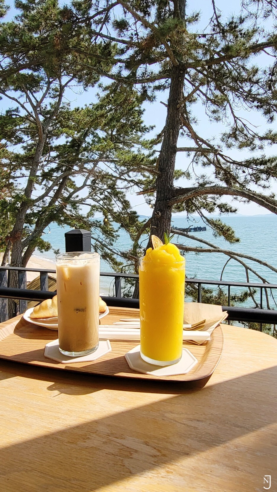 바다에서 놀고 카페에서 음료도 마시고 ㅎㅎ