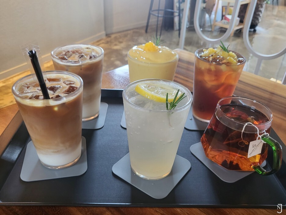 얼그레(7.000), 망고요거트스무디(7.500), 레몬에이드(7.500), 아이스티(7.000),