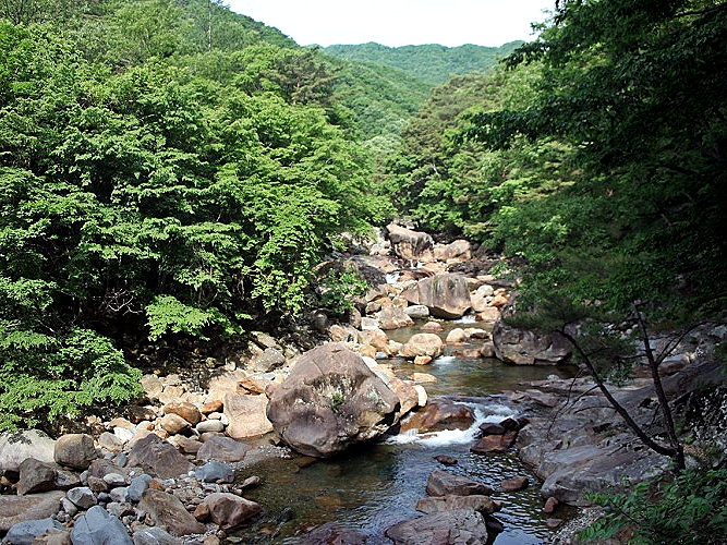 시리도록 맑은 계곡물, 기암괴석을 감도는 옥류 소리, 울창한 금강소나무의 바람 소리